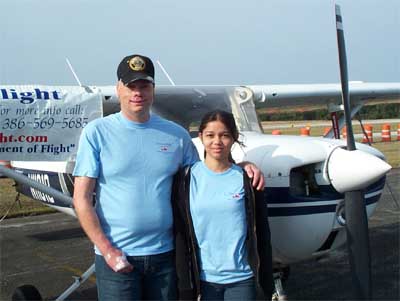 Former Teens-In-Flight student Victoria Emerson is now a West Point cadet. She stopped by to see the new Teens-In-Flight aircraft at the Flagler County airport. The sky is not the limit for Victoria. |