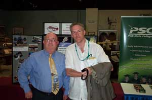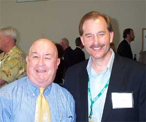 Teens-In-Flight President Jack Howell meets with Eric Lindbergh, grandson of Charles Lindbergh, at Sun' N Fun, Lakeland, FL. Eric was briefed on the TIF program and goals. |