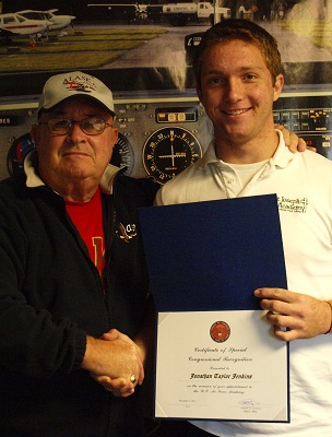 | Teens-In-Flight student Jonathan Jenkins displays his Congressional Appointment to The Air Force Academy. Good job Jonathan. |