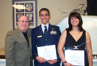 Colonel Howell (Left) congratulates Teens-In-Flight students Juan Rodriguez and Gloria King for their recent congressional nomination to the US Air Force Academy by Congressman John Mica |