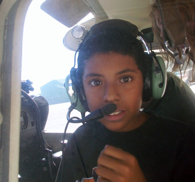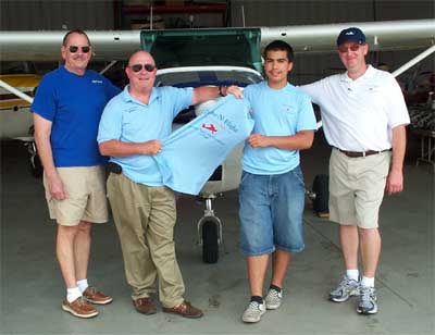 Ivan looses the back of his shirt after soloing in 3 different birds on his 16th birthday. He flew solo in the PA 17 (Vagabond), C-150, and C-172. A darn good pilot. Ivan has been with us since he was 11 years of age. |